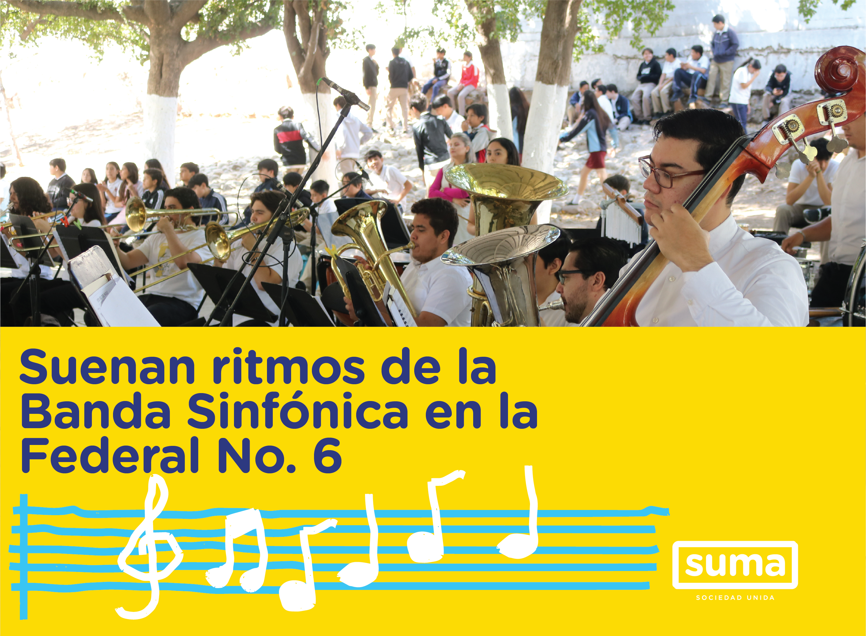 Estudiantes de la Secundaria Federal No. 6 vivieron su primer encuentro con una orquesta gracias a la presentación de la Banda Sinfónica Juvenil del Estado, dentro del programa “Súmate en tu Escuela”.