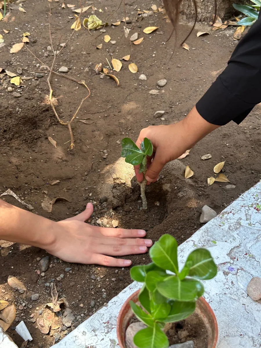 Pero la cosa no quedó ahí. Después de la presentación del corto a la comunidad estudiantil y directivos, ¡tocó ensuciarse las manos! Los líderes de paz se pusieron a plantar en las macetas de la escuela, demostrando que el cambio empieza con pequeñas acciones.