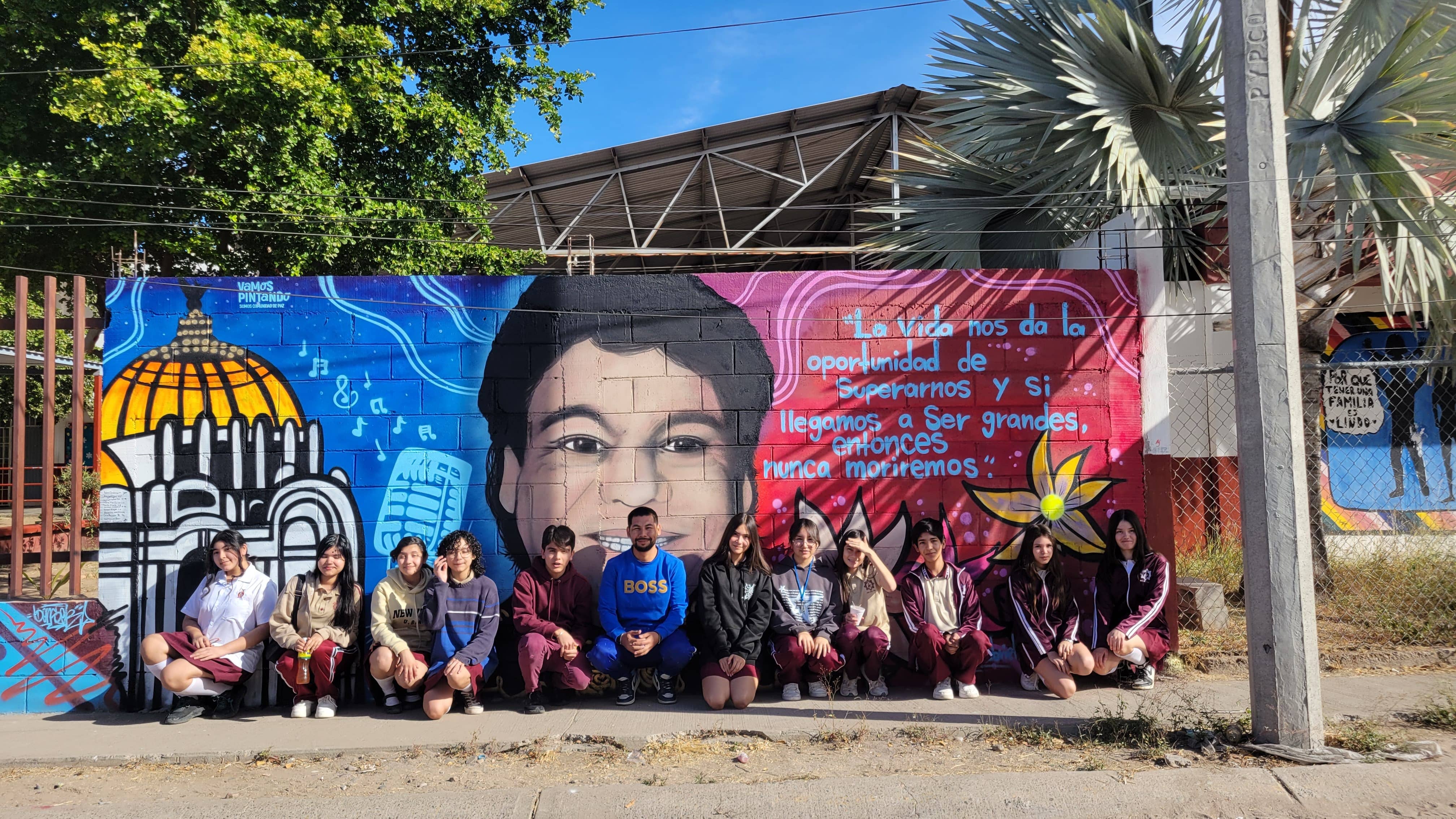 Este mural no solo embellece el entorno de la escuela, sino que también lleva un poderoso mensaje de paz que resuena en la comunidad.