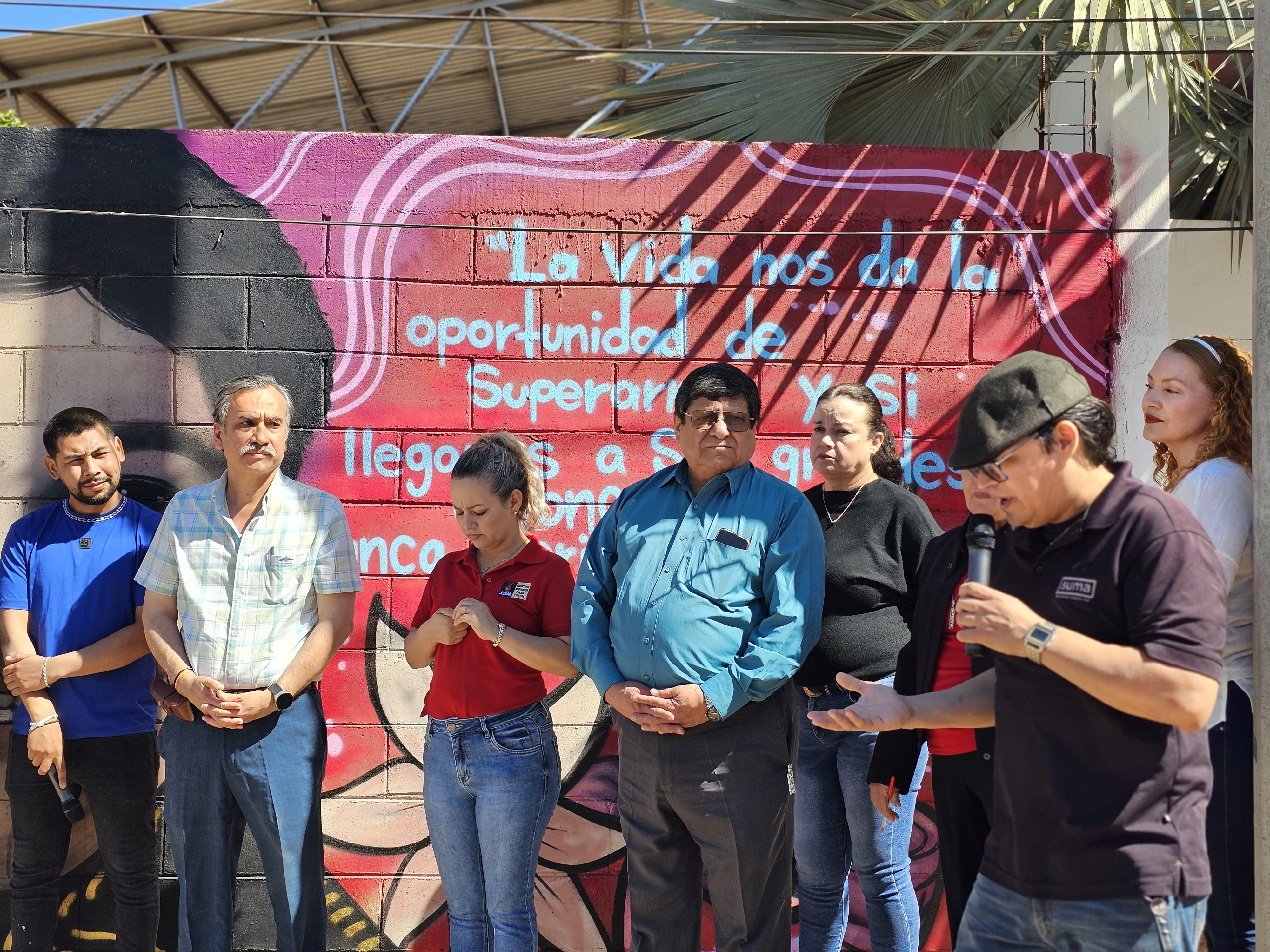 Este trabajo es el resultado de la colaboración entre las y los jóvenes estudiantes, el taller “Súmate por la paz” de Suma Sociedad Unida IAP y el artista urbano Denser, quien brindó su apoyo y mentoría a los alumnos durante el proceso creativo.